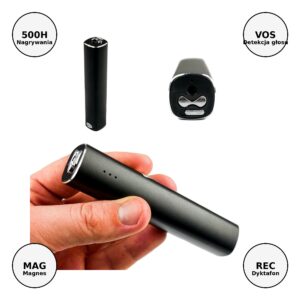 Dyktafon szpiegowski z magnesem i detekcją głosu – 500 godzin nagrywania 2w1